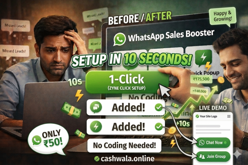 Ye WhatsApp Sales Booster Plugin automatically aapki website par floating WhatsApp button add karta hai jisse users direct aapse chat kar sakte hain.